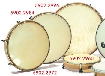 Mit stimmbarem Naturfell, naturlackierten Buchenholzreifen und vernickelten Metallspannreifen.