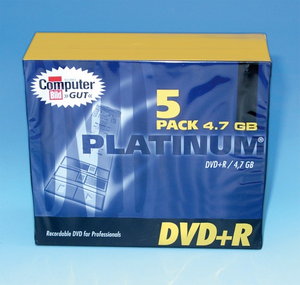 Platinum DVD+R, 4,7 GB, 16x , 5er-Packung, im Jewel Case
