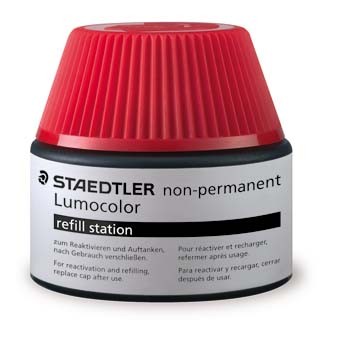 Praktische Tankstelle aus Polypropylen (PP) zum einfachen und sauberen Nachfüllen der Lumocolor Stifte und Marker.